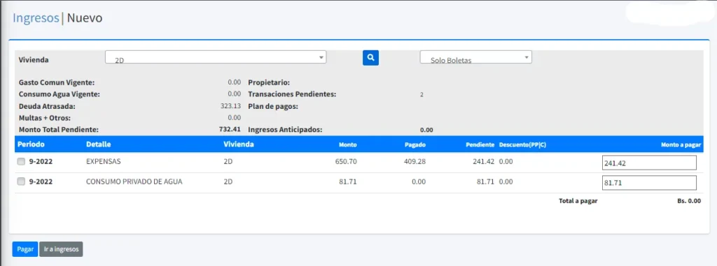 Para visualizar la lista de ingresos asociados a su vivienda, debe seguir los siguientes pasos: