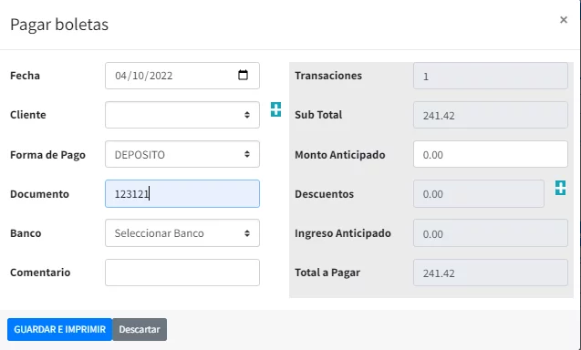 Una vez hayas llenado la información sobre del ingreso, haz clic en Guardar e Imprimir