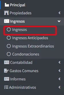 En el menú izquierdo seleccione Ingresos y luego Ingresos.