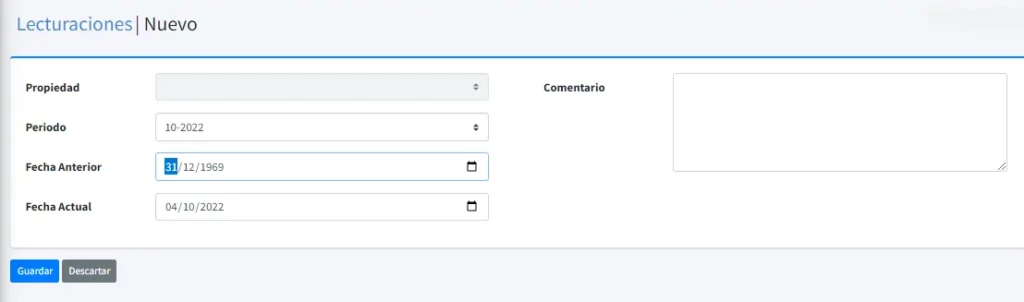 Ingresa la información que requerida de la lecturacion. Una vez hayas llenado la información sobre la lecturacion, haz clic en Guardar.
