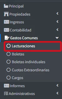 En el menú izquierdo seleccione Gastos Comunes y luego Lecturaciones