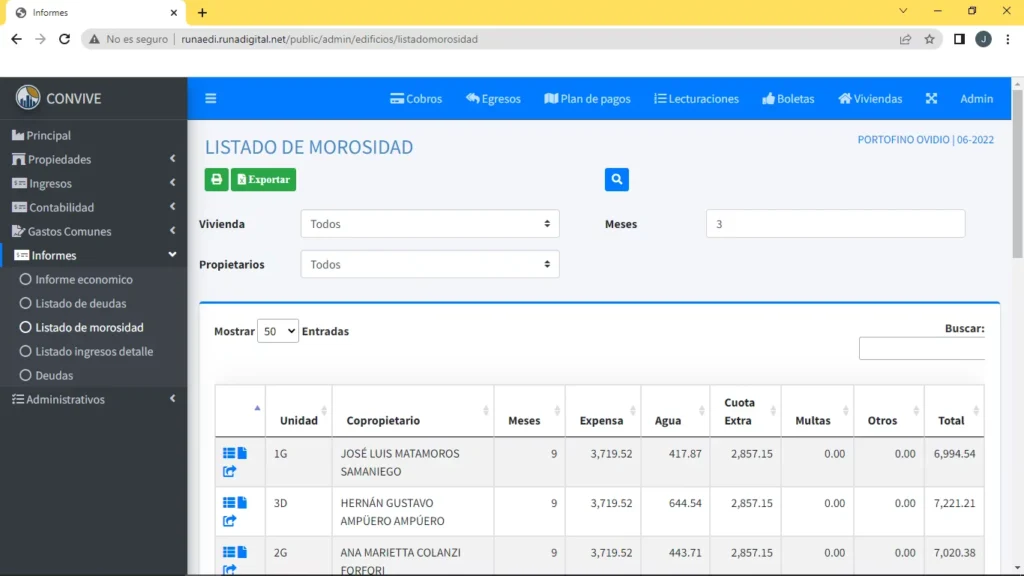 Selecciona el reporte «LISTADO DE MOROSIDAD»